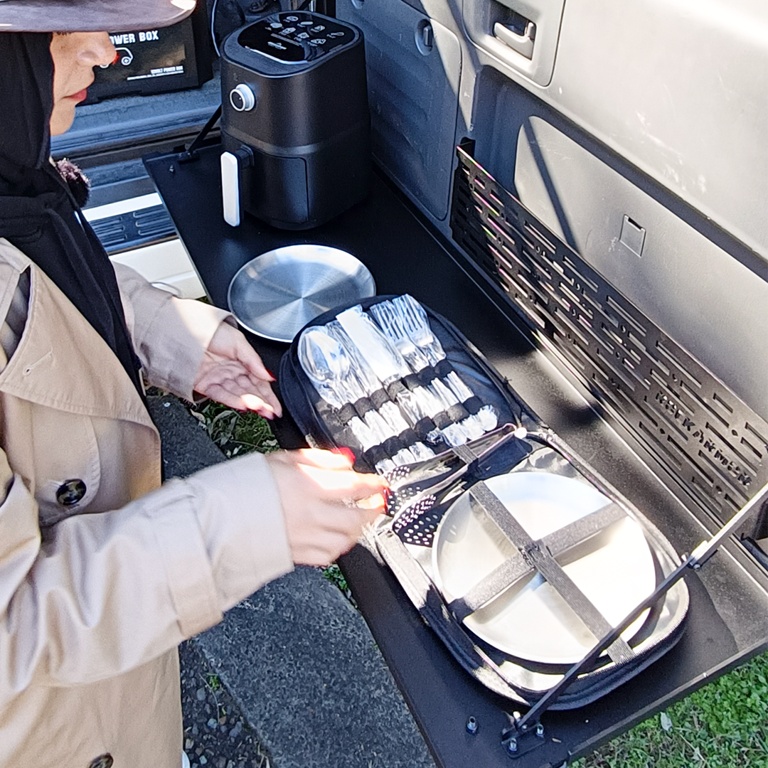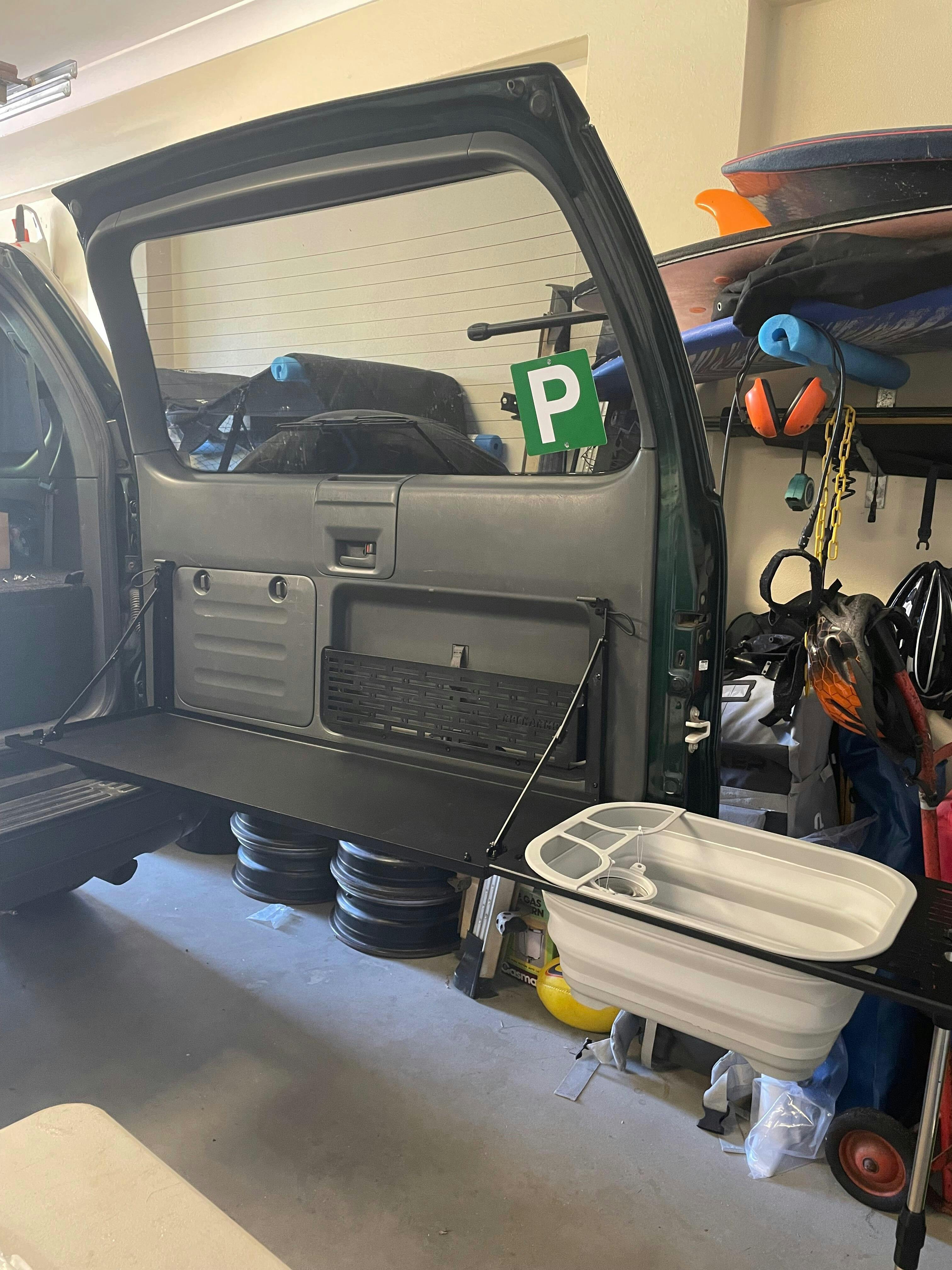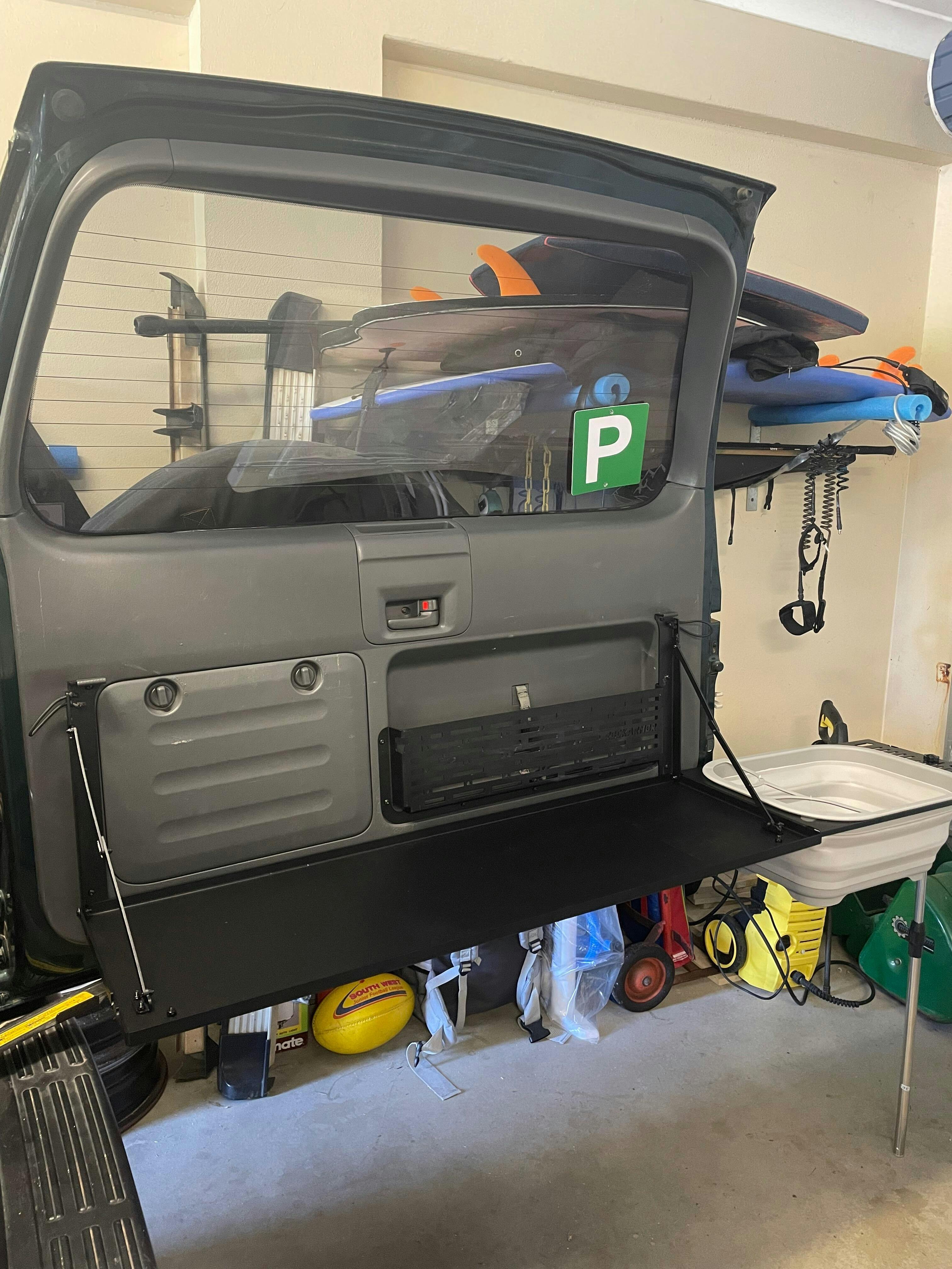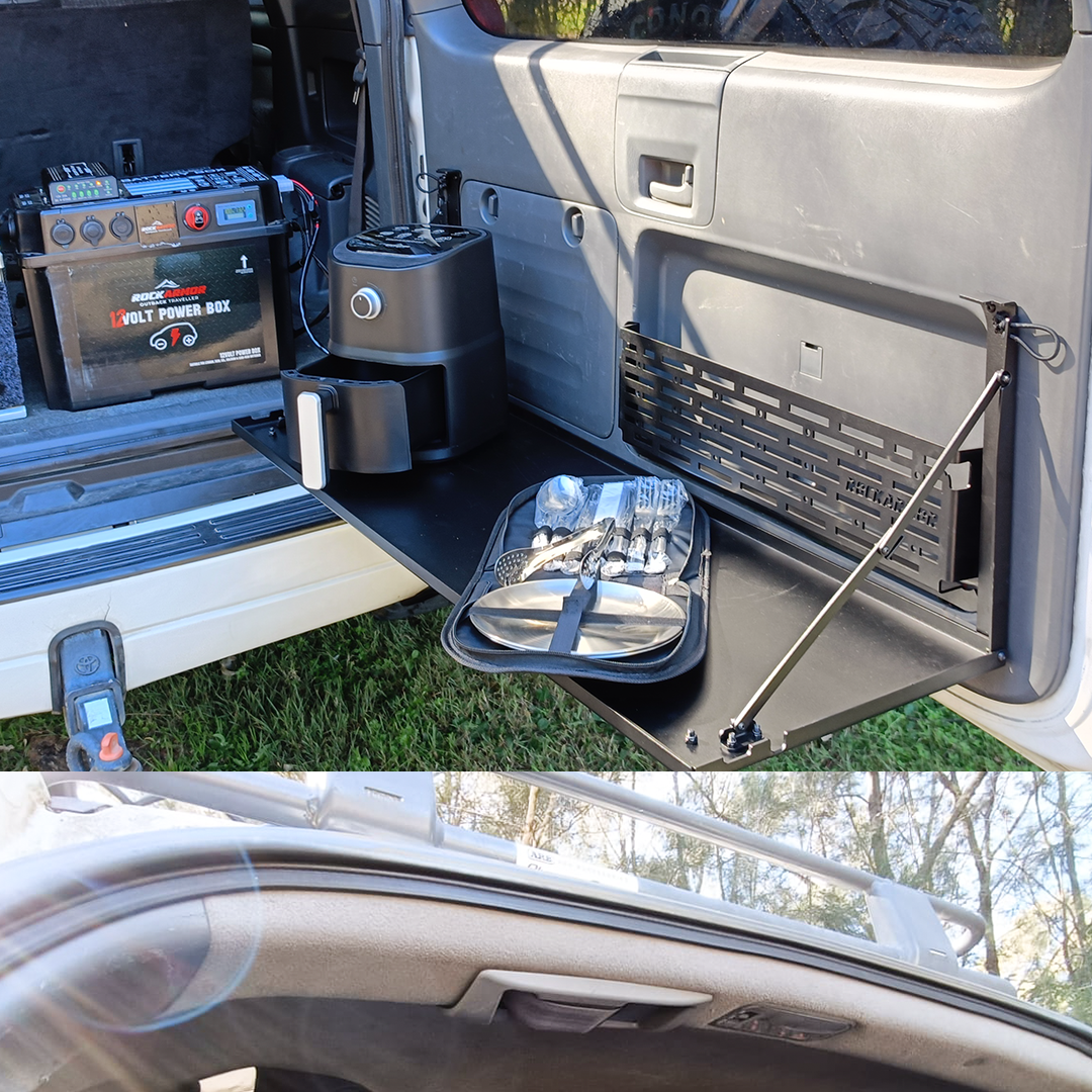 The Rockarmor Rear Door Folding Bench is the perfect accessory for anyone who is a casual weekender, professional tour and even your everyday tradie who requires some space to prepare food or even be used as work bench. With fitting only taking approx 1 hour, the rear door table is a very easy DIY project for anyone to fit at home.