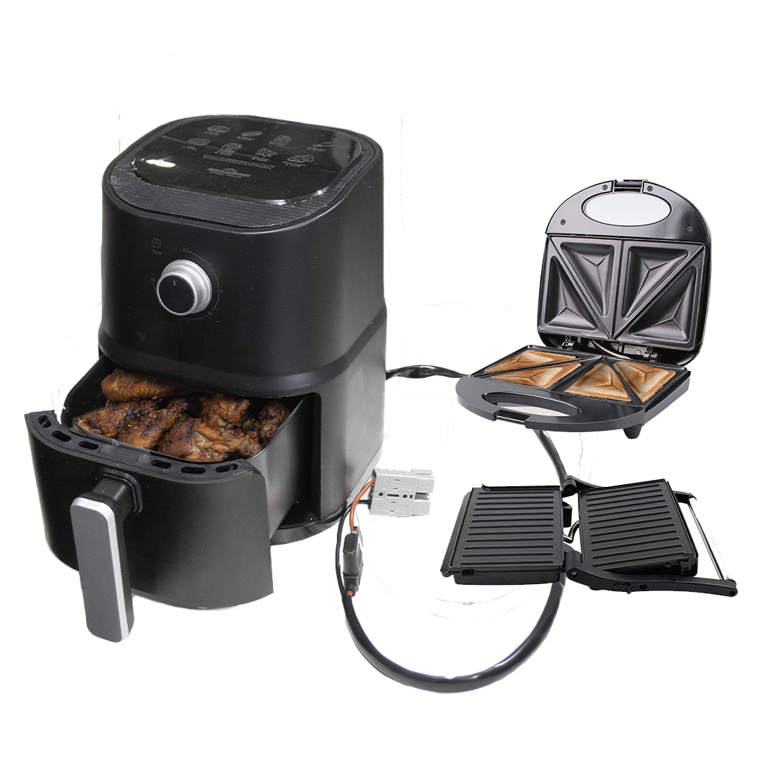 In just 15 - 30 minutes, perfectly cooked meals, wherever your journey takes you. What sets the Rockarmor 12-volt air fryer apart is its exceptional efficiency as it uses significantly less power than traditional 240-volt air fryers. While typical 240-volt fryers can consume up to 1500 watts, the Rockarmor 12-volt model operates at a mere 250 watts, drawing only 20 amps of power.