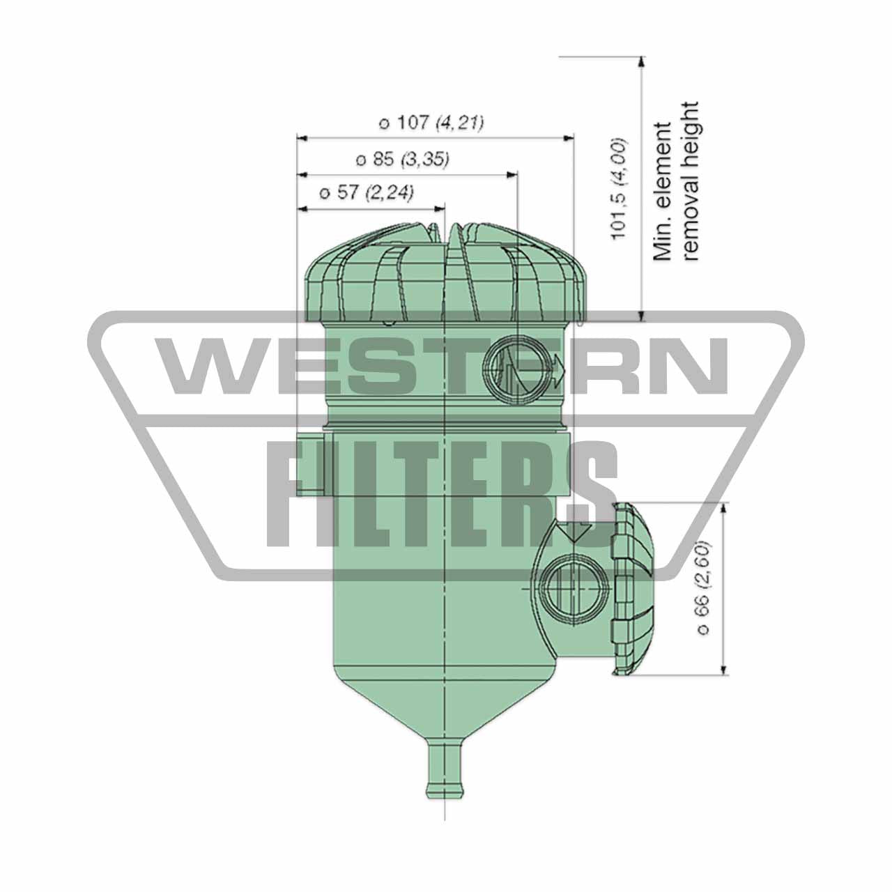 Drain approximately every 5,000 km. Replace element around 40,000 km (usage dependent). Replacement filters available separately.